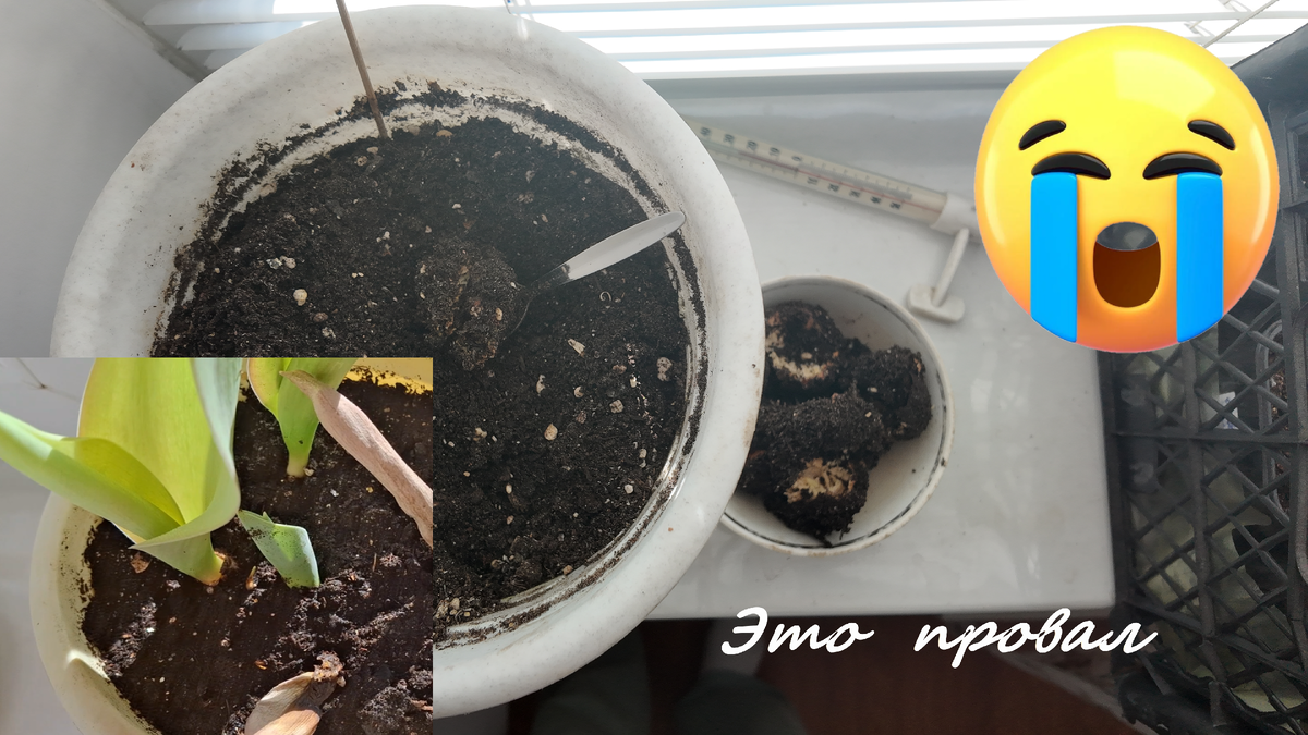 Здравствуйте. Подвожу итоги выгонки тюльпанов, которые сажала в ноябре 2025 года. Результат плачевный. Это провал. В этом году оказалось даже еще хуже, чем в прошлом. В предыдущем рассказе остановилась на том, что горшок с луковицами вынесла на балкон. Зимой земля естественно сильно замерзла и ни что не согрело этот горшок, как бы я его не укутывала. С наступлением тепла, примерно в середине февраля занесла горшок домой и поставила на подоконник. Температуру повышала постепенно, ориентируясь на градусник. Полив был очень редкий. Через месяц начала смотреть землю и обнаружила сгнившие луковицы. Эксперимент не удался, так бывает. На этом и закончу высаживать луковицы тюльпанов в домашних условиях в горшках. Кому интересно, статья о посадке луковичных в горшок читайте 👉здесь. Смотреть видео 👉 здесь.