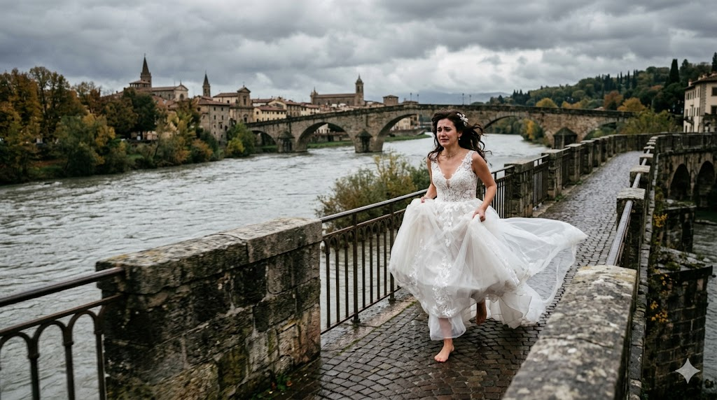 Она не знала города, просто бежала туда, где было меньше огней. Путь привел её к огромному мосту, перекинутому через черную, незамерзшую реку. Февральская ночь была безжалостной: ледяной ветер прошивал платье насквозь, а ноги в атласных туфлях давно онемели от холода. Катя остановилась у перил, глядя вниз, на клубящийся пар над полыньей.