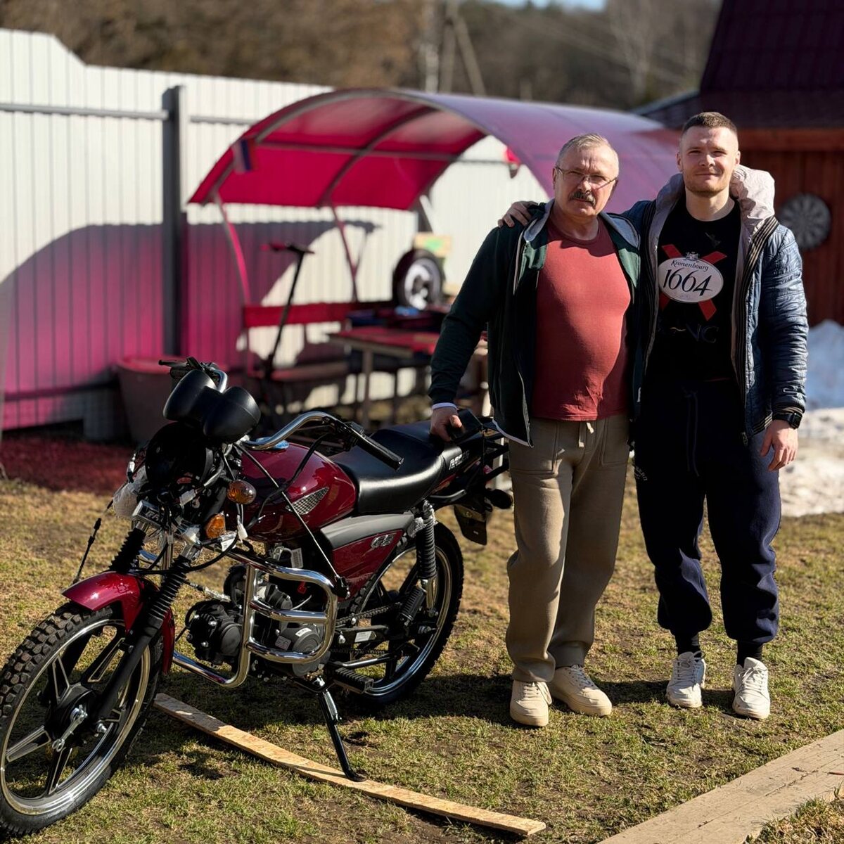 🧬 💭 Ладно, заголовок для затравки. Просто на этой неделе говорили про это, смотрели видео как гнутся гвозди. У папы с мамой были Дни рождения, в том году маме дарил электровелосипед 🚴кто следит, должен помнить, в этом году крутого робота-мойщика окон 🪟 А вот бате как раз уже в этом году - подарил железного коня 🏍️ , будет ездить летом на работу. Все довольны 😊 😹Я в фирменной футболке, сегодня буду на читмиле, подготовился🍻 ✅ Обязательно фиксирую: в понедельник - тяга, во вторник - жим ☝️ Всем - силовых 💪🏼