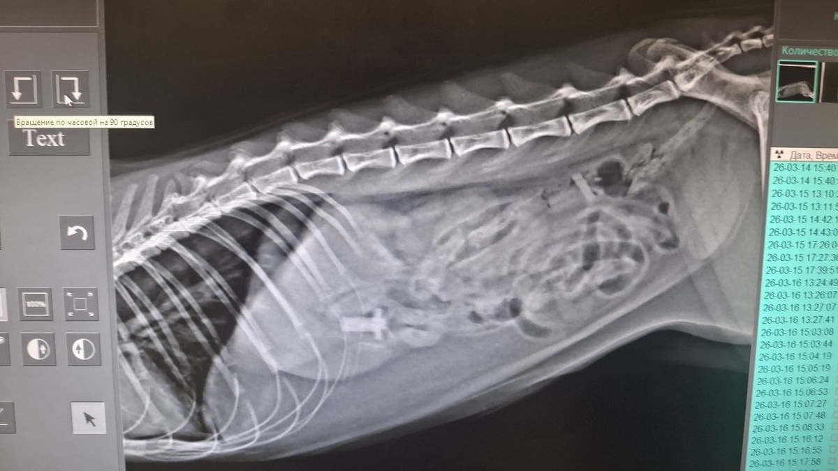 Позвонила клиентка, кота рвёт. Плохо ест, но воду пьет, бодр и весел. До этого играл с пульками от игрушечного пистолета. Пульки нашли на рентгене. Проблема не только в пластиковой части, а ещё и в пороллоновом «хвосте», который не даёт этой пульке продвигаться по кишечнику. Обошлись малой кровью (но приличной ценой). Достали в клинике пульки эндоскопом. Без разрезов. Одну через «вход», вторую через «выход».