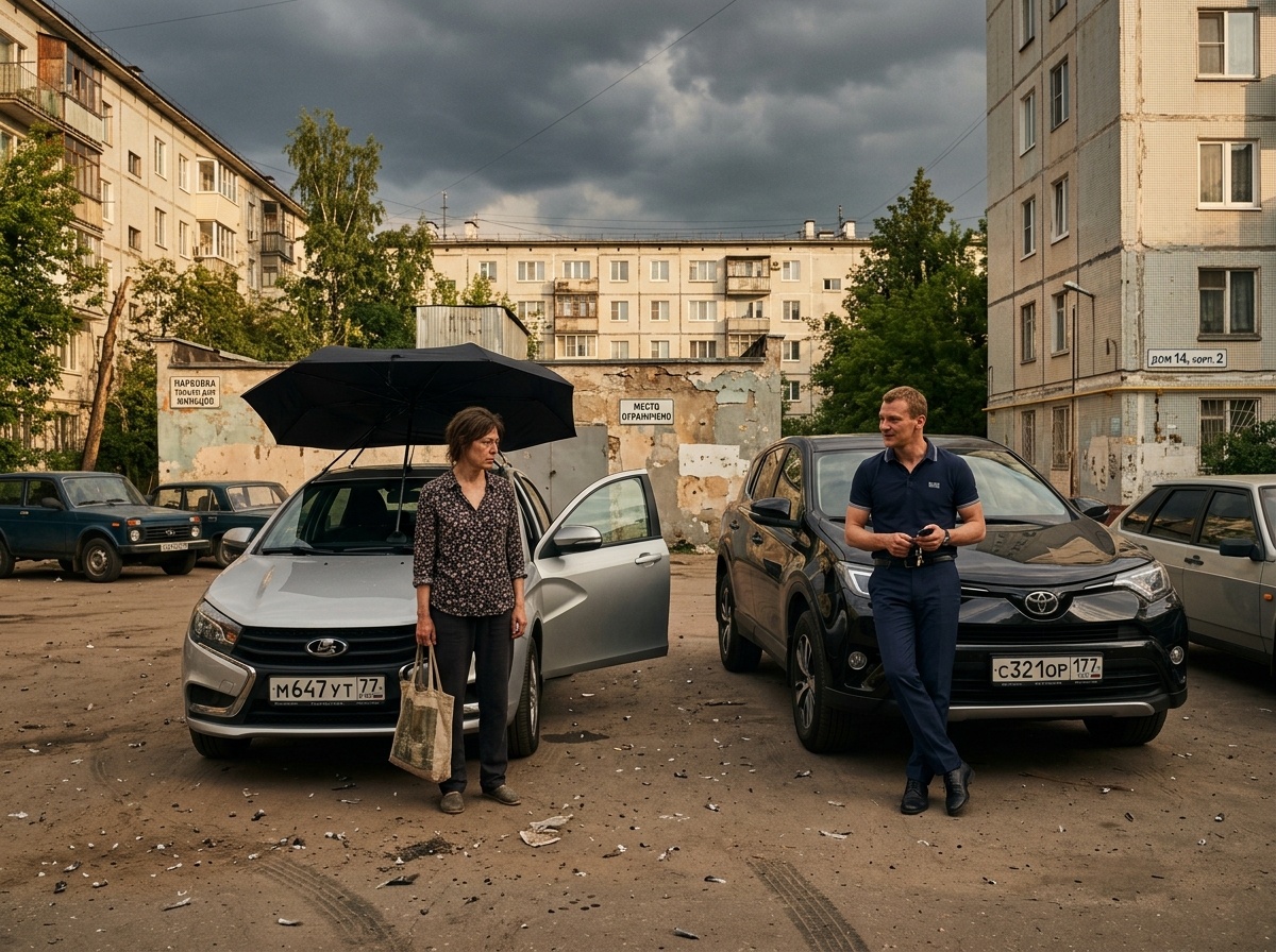 У подъезда стоял Артём с восьмого этажа, тот самый, что каждое утро протирал свой чёрный кроссовер так, будто это не машина, а икона.