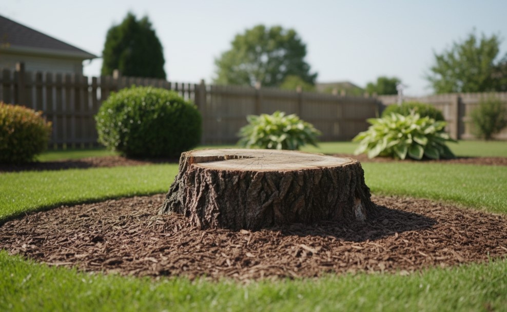 Если нужен быстрый и аккуратный результат, почти всегда выигрывает фрезерование пня. Это тот случай, когда пень просто измельчают ниже уровня земли, и место становится пригодным для дальнейшего использования.