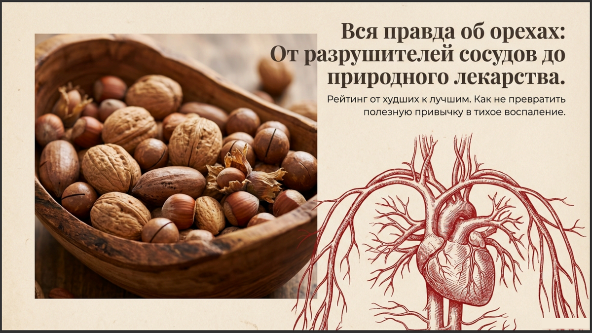 Каждое утро миллионы людей едят орехи, думая, что заботятся о здоровье. Иногда бывает, что некоторые из нас выбирает именно тот орех, который незаметно разрушает их сосуды, печень или нарушает внутреннее равновесие системы.