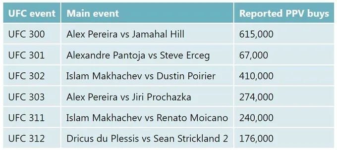 Стали известны продажи платных трансляций турниров UFC — и тут есть неожиданные расклады. Главный хит — юбилейный UFC 300 с боем Перейры против Хилла: 615 тысяч PPV при цене $79,99. А вот другие события уже не так стабильны: — Перейра vs Прохазка (UFC 303) — 274 тыс — Махачев vs Порье (UFC 302) — 410 тыс — Махачев vs Мойкано (UFC 311) — 240 тыс Антирекорд — UFC 301 с боем Пантожи и Эрцега: всего 67 тысяч продаж. ❓Кто сейчас главный магнит PPV в UFC? 🔥 — Перейра ❤️ — Махачев 🤷♂️ — Свой вариант оставлю в комментарии 👊 Подпишись на Meta MMA | Meta MMA в MAX | Наш канал в ВК