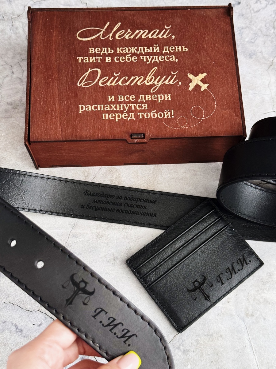 - Кожаный ремень с гравировкой снаружи и внутри