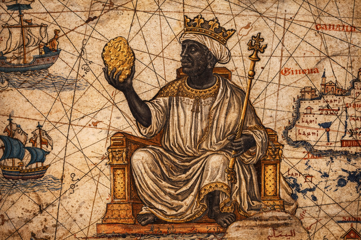 Именно в этом контексте появился знаменитый Каталонский атлас 1375 года — один из важнейших картографических памятников Средневековья. На нём изображён африканский правитель с золотым самородком в руке и подписью на старокаталанском, объясняющей, что это богатейший из царей, в чьих землях золота больше, чем где-либо ещё. Историки убедительно связывают этот образ с Мансой Мусой.