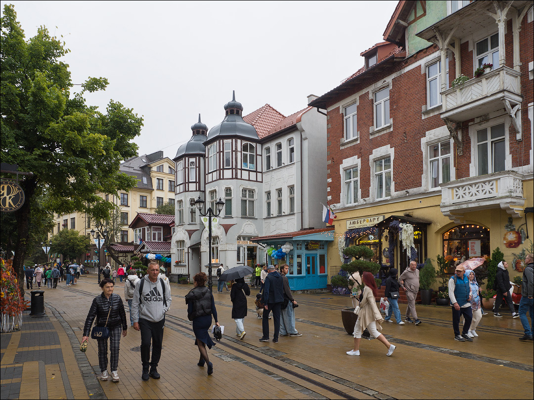 Прощаться с Балтикой мы решили в Зеленоградске. Всё-таки там намечался День города, обещавший оживить и без того праздничные курортные улицы. Да и море — на прощание — тут было под боком. Путь и очевидно уже штормящее и пасмурное — но всё же!