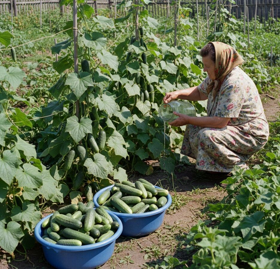 Это золотое правило. Поливайте огурцы только отстоянной, нагретой на солнце водой (не холоднее 20–22°C). Холодная вода вызывает шок, загнивание корней и развитие мучнистой росы. В жару полив должен быть ежедневным (вечером), в пасмурную погоду — умеренным. Полив под корень не допускает ожогов листьев.