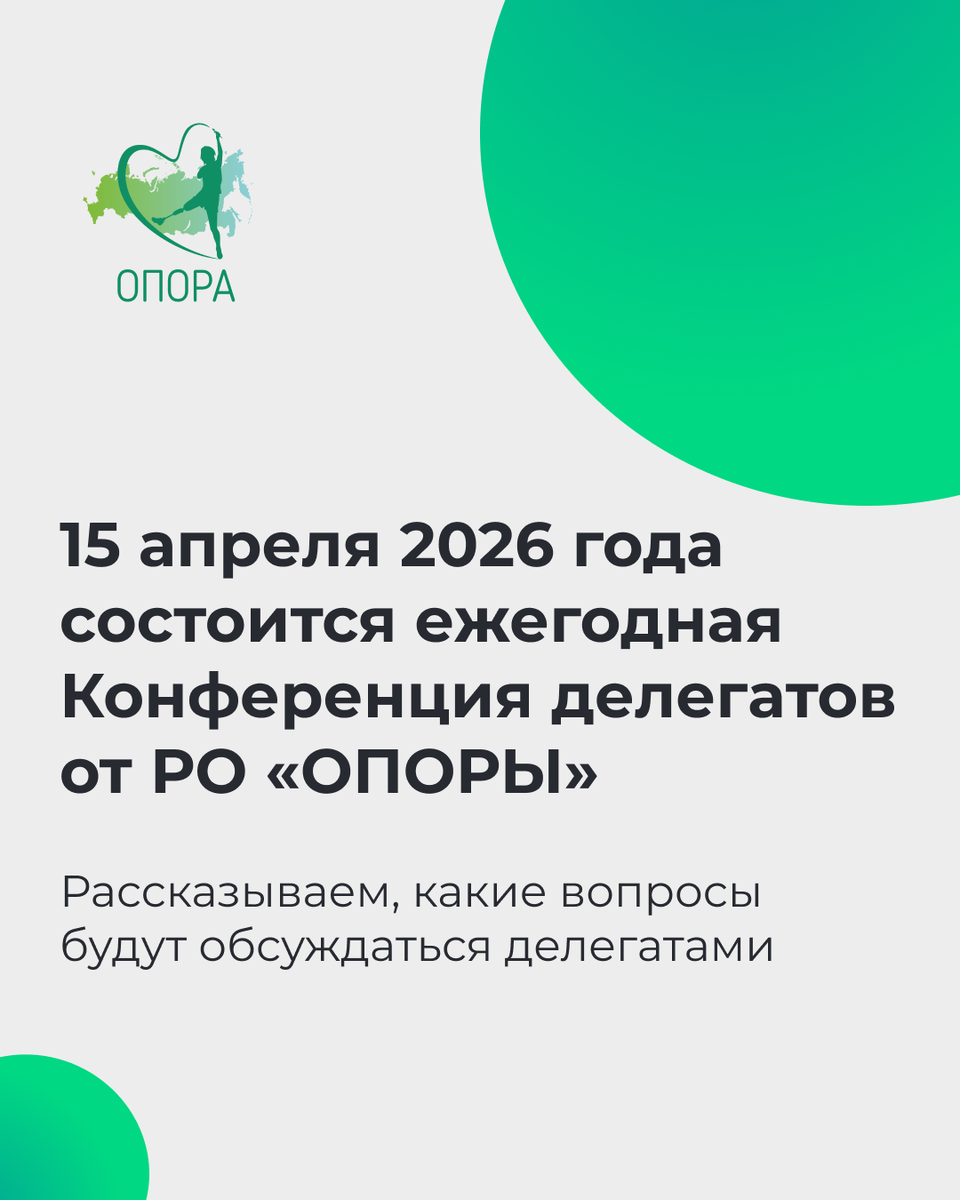 🔥 15 апреля 2026 года состоится ежегодная Конференция делегатов от региональных отделений Общероссийской общественной организации инвалидов «ОПОРА»! 🔥 Мероприятие пройдет в онлайн-формате для удобства участников из всех регионов. Что запланировано в рамках конференции?⠀ ✅ Подведение итогов работы за 2025 год, обсуждение планов и приоритетов на текущий год; ✅ Обсуждение проблемных вопросов при оформлении направлений на МСЭ в регионах и предложений по совершенствованию установленного порядка; ✅ Обмен опытом по практической стороне обеспечения протезно-ортопедическими изделиями и иными ТСР по электронным сертификатам. Обо всех итогах конференции и принятых решениях обязательно расскажем в наших соцсетях и на сайте oporarus.ru — следите за новостями 👍