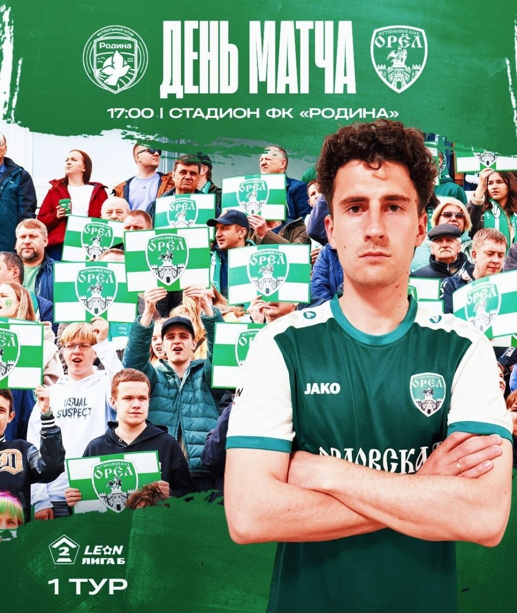 ФК «Орел» начал новый сезон с матча против команды «Родина-3» (Москва). Первый матч «зелено-белых» станет выездным. ФК "Орел" Орловскую команду поведет новый капитан Евгений Ушаков, а ворота «зелено-белых» будет защищать Павел Земсков. Также в стартовом составе «Орла» нападающий Игорь Бугаенко, защитники Вячеслав Гордиенко и Сергей Хмелевской и др. ФК "Родина"