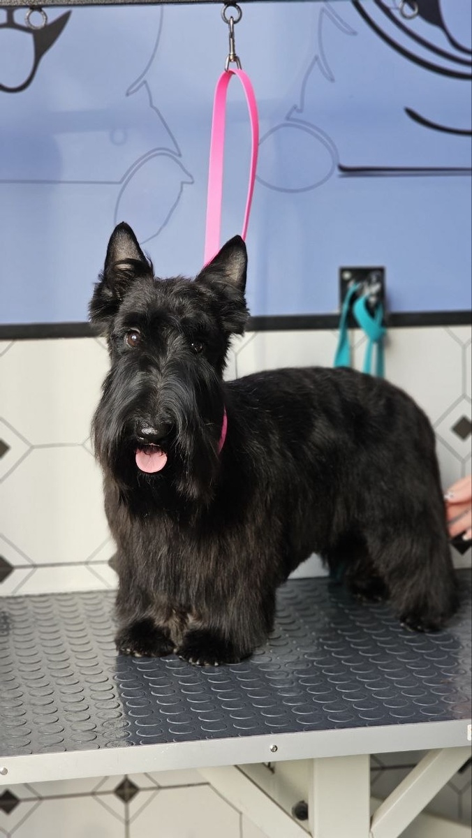 Черный красавец Блейд, породы скотч-терьер, забегал на тримминг к топ-мастеру Миле ❤️