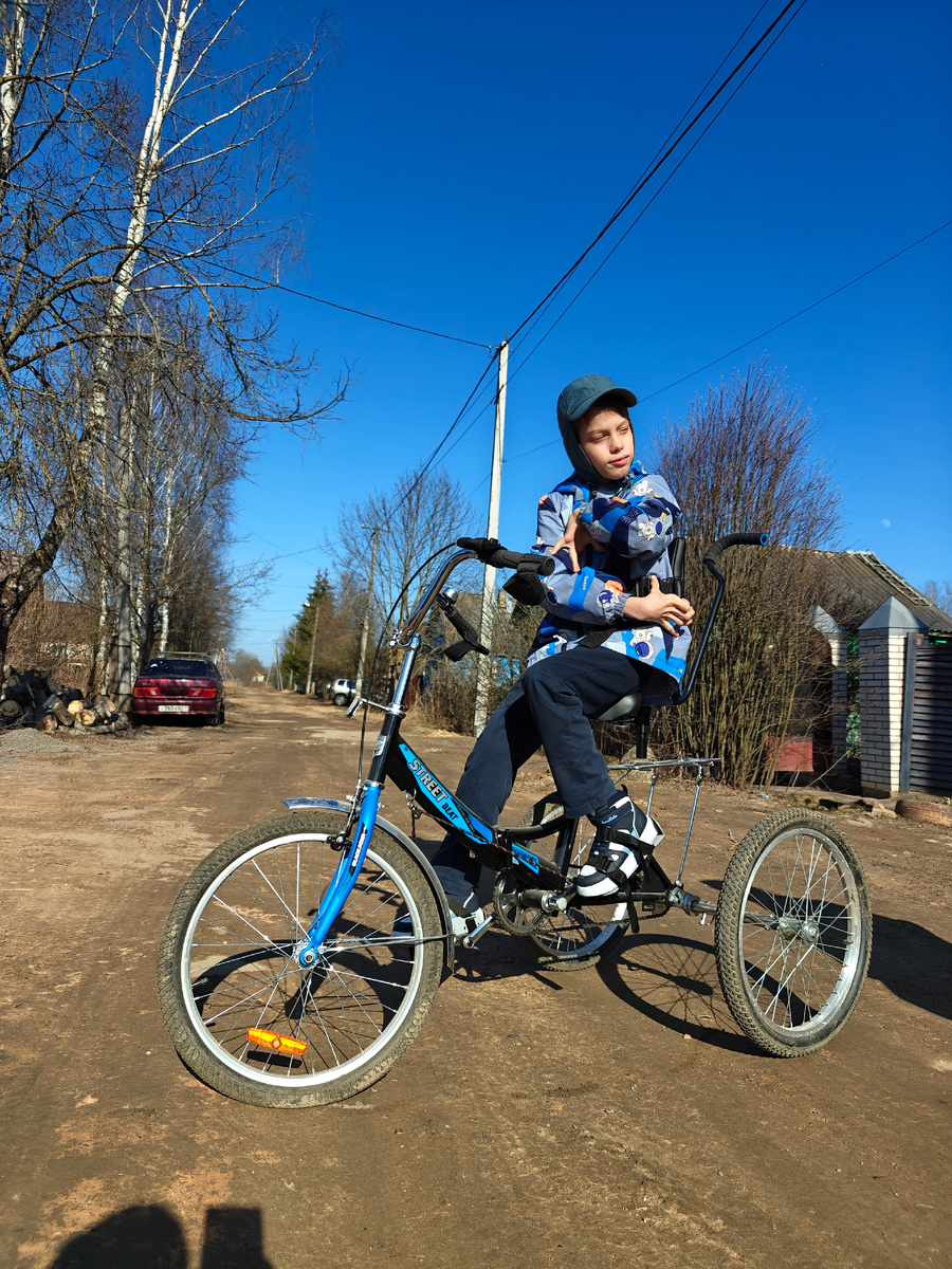 Арсений тоже захотел кататься на велосипеде, Саша с ним поехали кататься.