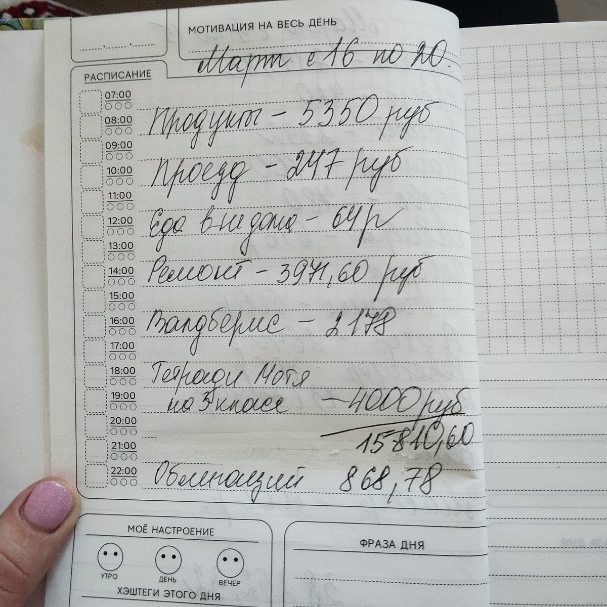 Расходы с 16 по 20 марта.