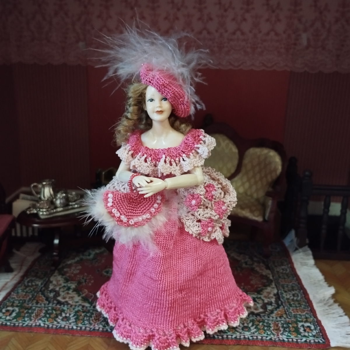 Далее опубликую обзорное видео по вязанию юбки, берета, веера и баски.