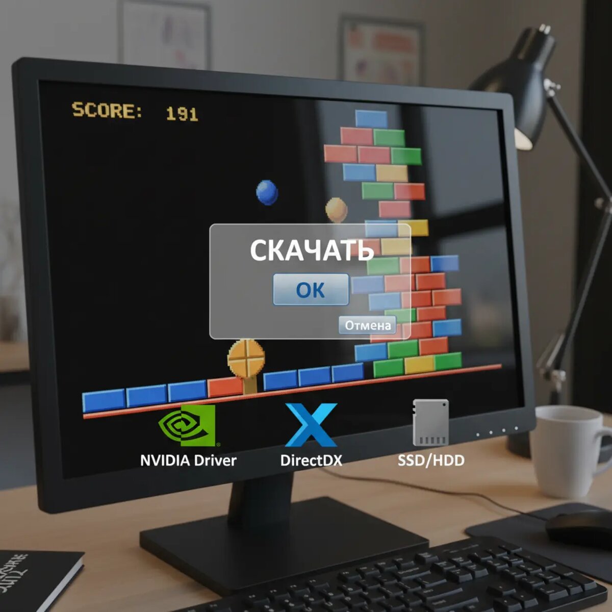 Bricks — простая аркадная игра про разрушение кирпичных стен шаром и платформой. Игра лёгкая, но при установке иногда возникают ошибки доступа к файлам или проблемы с драйверами видеокарты. Bricks не требовательна: обычно достаточно любой современнной интегрированной или дискретной видеокарты, 2–4 ГБ ОЗУ и ~200 МБ свободного места. Проверьте: При первом запуске уменьшите графические параметры для стабильности: понижайте разрешение, отключите тени и эффекты, включите V-Sync только при микрофризах. Если заметны падения FPS — закройте фоновые приложения и обновите драйверы видеокарты. Дополнительно стоит установить актуальные пакеты Microsoft Visual C++ Redistributable и DirectX, если игра просит дополнительные библиотеки при первом запуске.