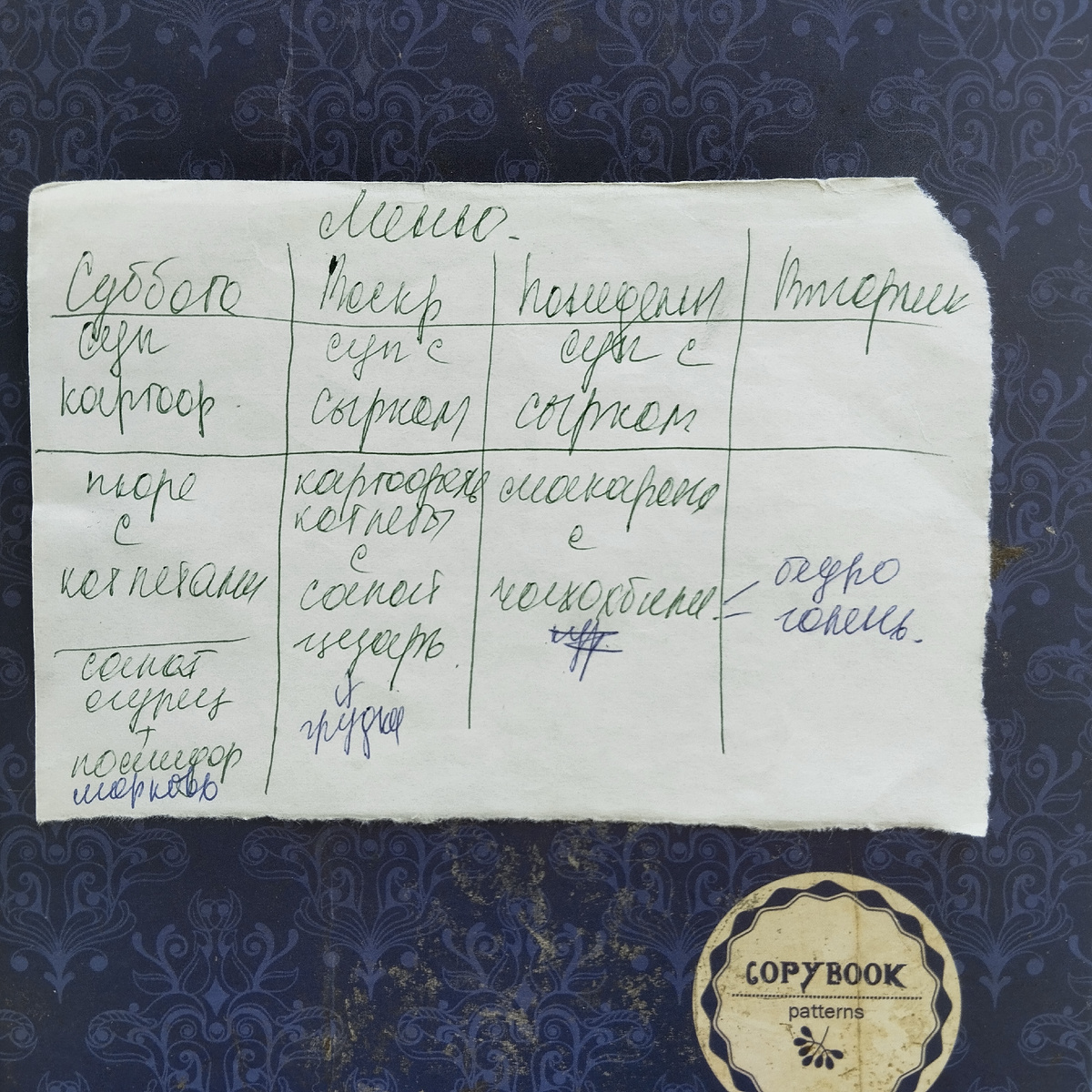 В выходные писала меню на ближайшие три дня.С субботы по вторник.Попробую эту неделю таким образом., хочу посмотреть сколько выйдет на продукты таким способом.