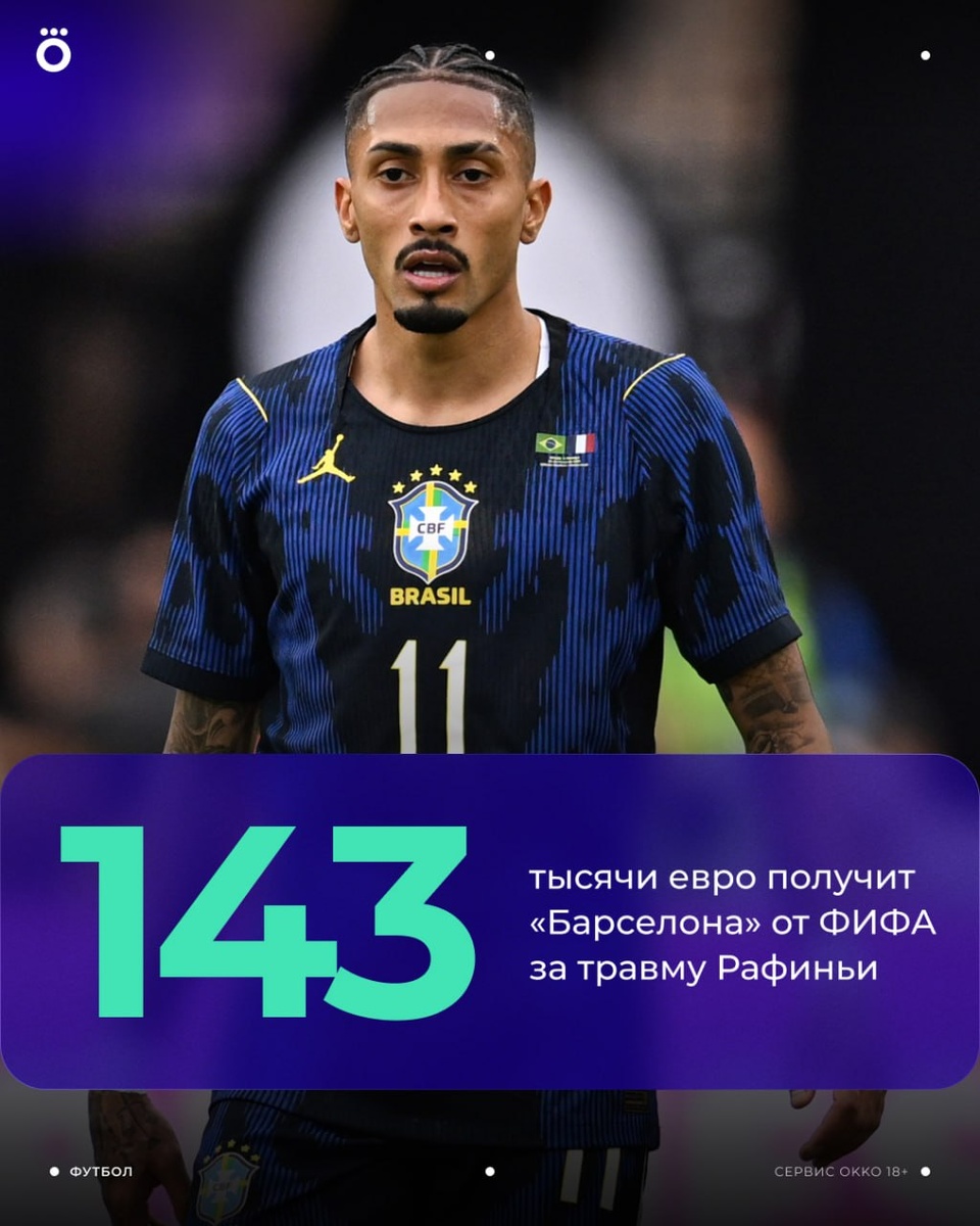 ФИФА заплатит «Барселоне» за травму Рафиньи 🤑 Компенсация за повреждение в матче против Франции начнет начисляться с 23 апреля и составит 20 548 евро в день. Если бразилец восстановится к концу апреля, то каталонцы получат не менее 143 836 евро 💸 😀 VK Okko Cпорт, MAX Okko Спорт