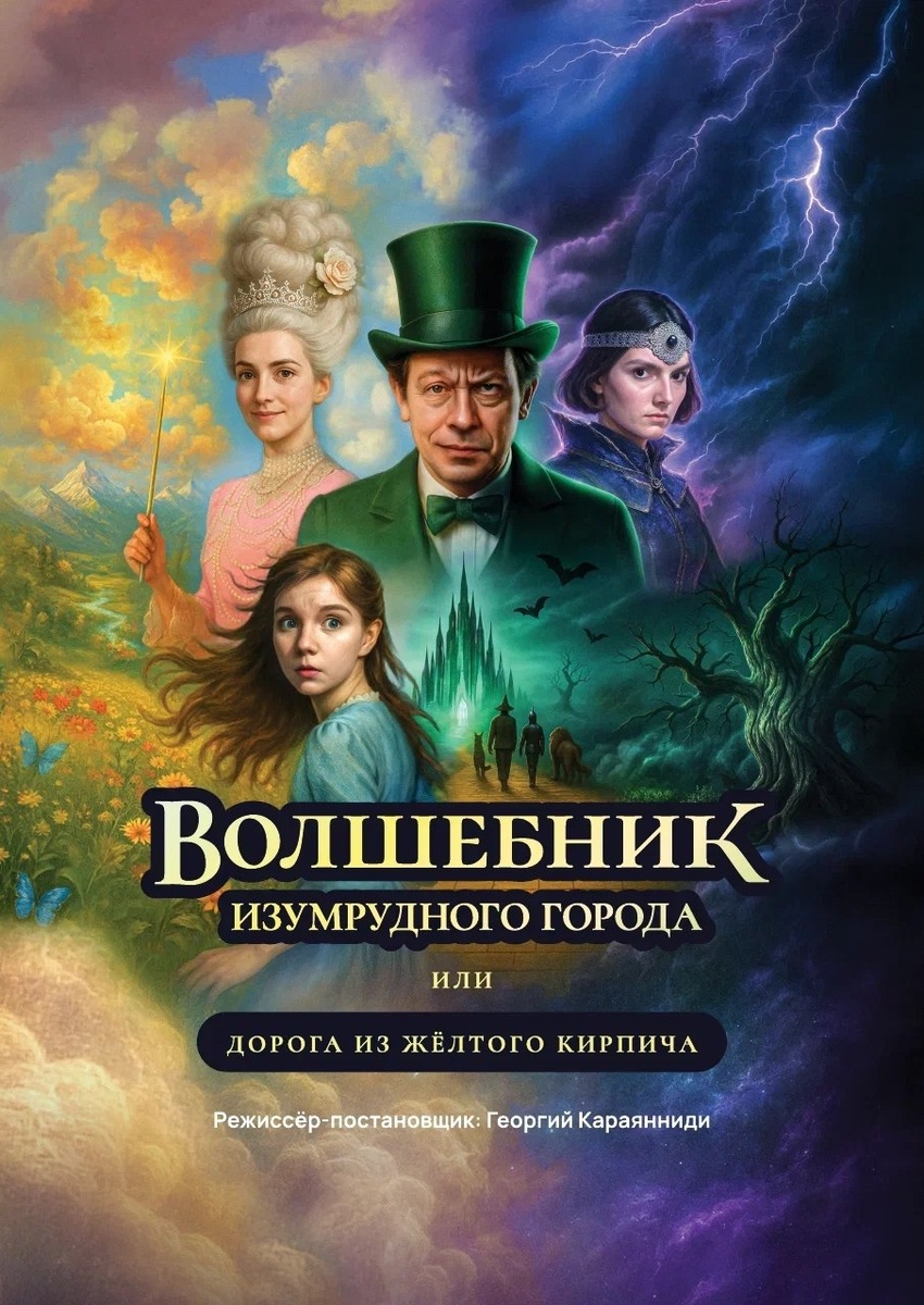 Мощный ураган уносит девочку Элли и ее собаку Тотошку в волшебную страну, где ее ждут невероятные приключения, встреча с волшебницами и ведьмами, дорога из желтого кирпича, ведущая в изумрудный город, знакомство с великим и ужасным Гудвиным, обретение новых друзей: Страшилы, Железного дровосека, трусливого Льва. Режиссер Георгиус Караяниди (Греция) наполнил этот комедийный спектакль прекрасной музыкой, танцами и трюками. И в последней части этого действа вы увидите, как Гудвин исполняет самые заветные мечты героев и показывает самые настоящие, невероятные цирковые фокусы! 4 апреля в роли Гудвина - режиссер "Папиных дочек" и "Людмилы Гурченко" - Сергей Алдонин Волшебник Изумрудного города - Булгаковский Дом https://dombulgakova.ru/volshebnik/?ysclid=mn8rorf2y6789311779