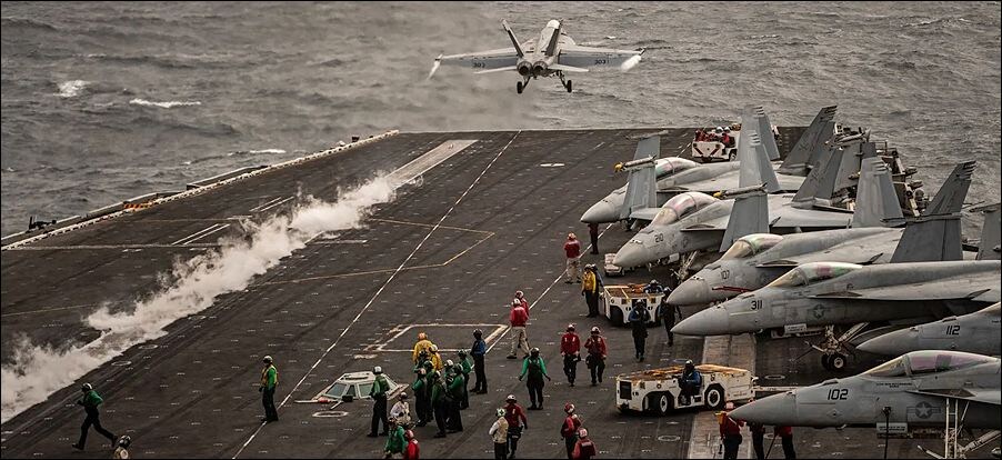 Все фотографии в статье сделаны на авианосце "Авраам Линкольн", ведущего сейчас боевые действия против Ирана. Итак,