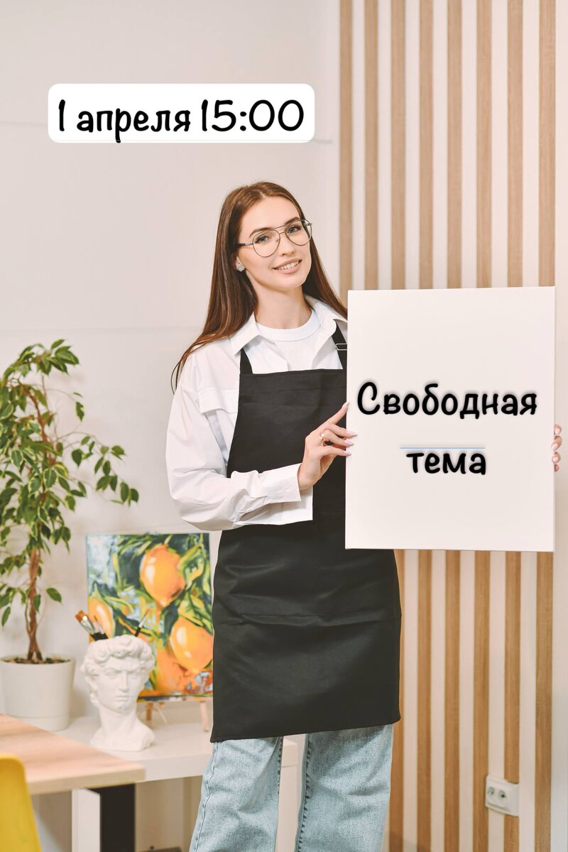 «Свободная тема». Можно выбрать любой сюжет из предложенных https://vk.ru/album-210435647_301153215 Рисуем с Аней ✨ ХОЛСТ НА ПОДРАМНИКЕ 30*40 см.: - Детский сюжет -1400 руб. - Взрослые -1700 руб. Длительность: 1,5-2 часа Для записи и вопросов: 📞 +7 (992) 331-83-51 @ArtAkadem66 🌐 https://t.me/art_akadem66 🌍https://vk.com/art_akadem