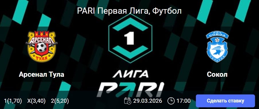 Арсенал Тула - Сокол: PARI Первая Лига ФНЛ 26-й тур чемпионат России (29/03/26/17:00
