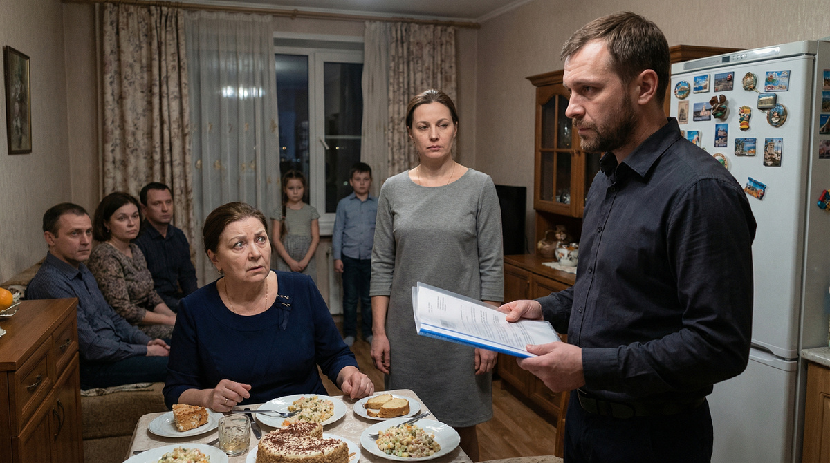Гости уже расселись. Игорь, двоюродный брат Лены, крутил в пальцах телефон. Наташа поправляла платье дочке. У окна сидели дети — Дима и Вика. Соседка Валентина Андреевна с интересом разглядывала кухню и всё спрашивала, где заказывали фасады.