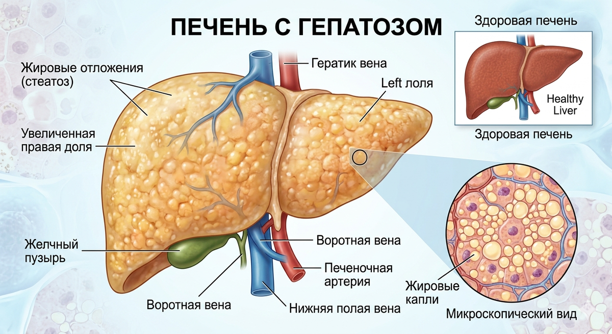 Стадия 1: Жировая дистрофия печени (стеатоз)