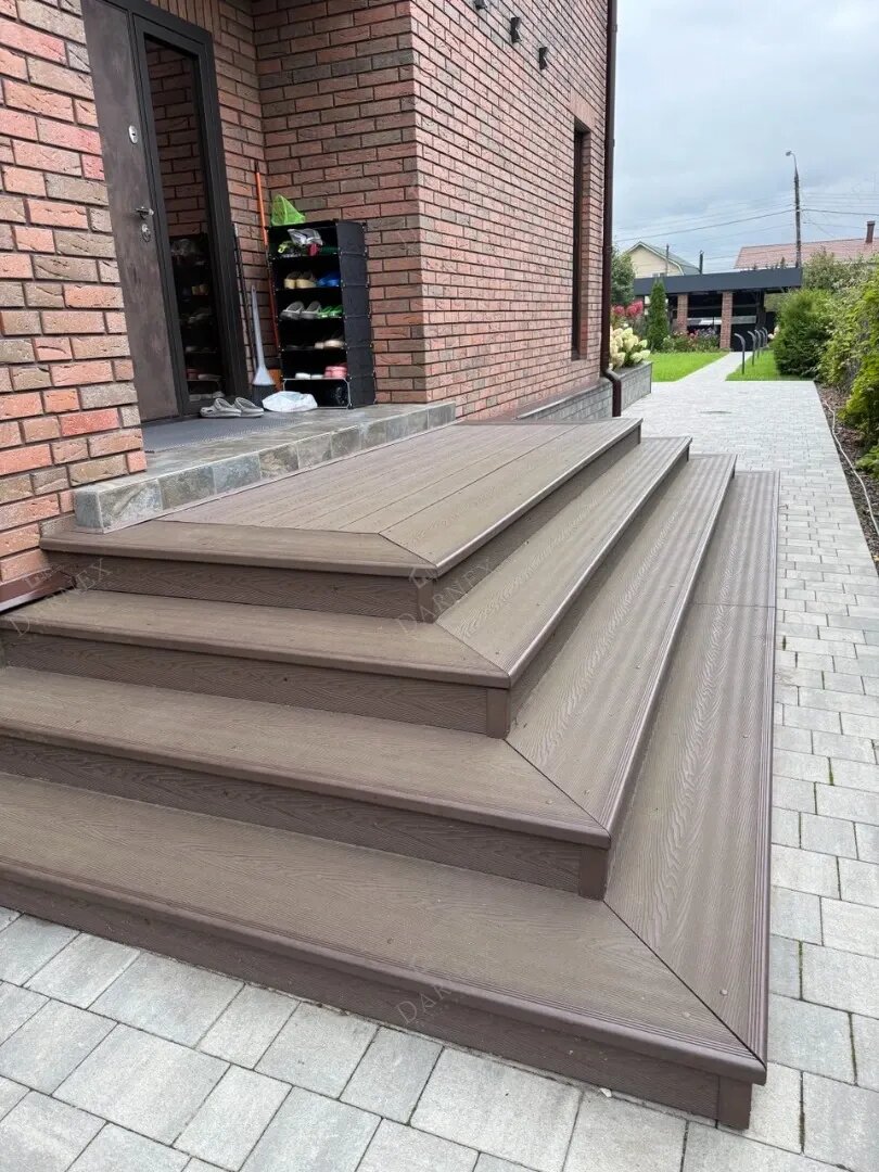 Крыльцо – это не просто часть дома, это первое впечатление, которое гости получают, входя в ваш дом. Оно должно быть не только красивым, но и удобным. Одним из лучших решений для этого является крыльцо на три стороны, выполненное из ДПК (древесно-полимерного композита). Такой проект объединяет практичность, эстетическую привлекательность и долговечность. Давайте разберемся, почему это отличный выбор для вашего дома. ДПК – это материал нового поколения, который сочетает в себе древесные волокна и полимерные добавки. Этот материал обладает уникальными свойствами, которые делают его идеальным для наружных конструкций, таких как крыльцо. Вот несколько причин, почему стоит выбрать именно ДПК: Крыльцо с тремя сторонами – это не только удобный, но и стильный вариант для входа в дом. Такая конструкция обеспечивает свободный доступ с разных сторон и добавляет пространство. Она идеально подходит для тех, кто любит принимать гостей и ценит комфорт в каждом уголке своего дома. Трехстороннее крыльц