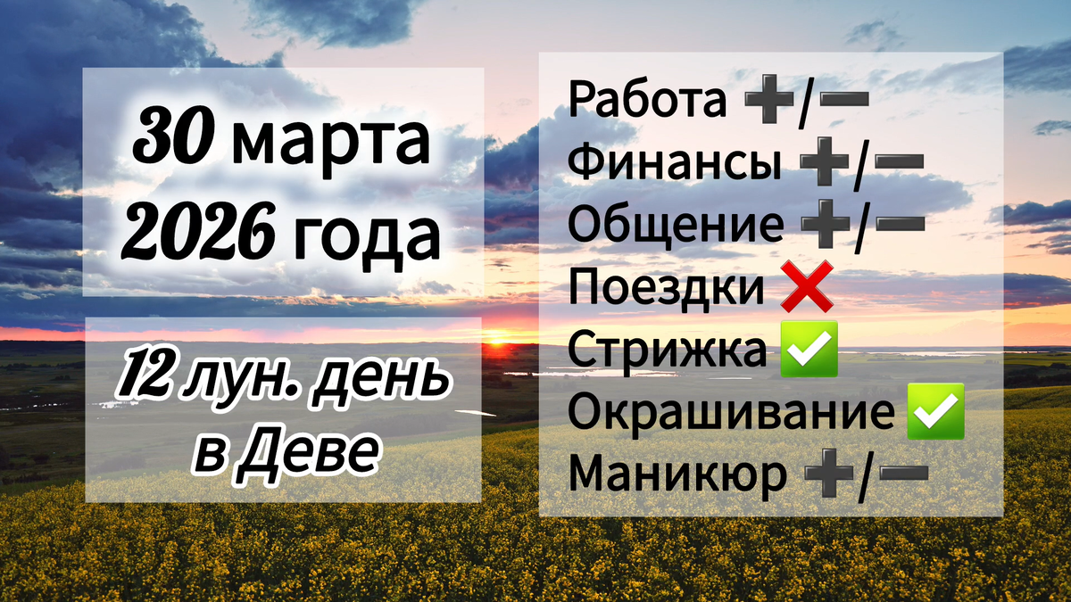 В первой половине дня нежелательно развивать бурную деятельность и назначать важные встречи. Этот день располагает к размеренной, спокойной текущей деятельности. Рекомендуется заниматься делами на приусадебном участке или однотипной монотонной работой. Именно при Луне в Деве эти виды деятельности будут наиболее успешны. Для новых проектов это не лучшее время. Также не стоит общаться с начальством и менять место работы. Финансовые операции и покупки будут успешными при условии, если они были продуманы заранее. Спонтанные и импульсивные могут принести разочарование. Во время финансовых сделок внимательно проверяйте все документы. В общении возможны эмоциональные качели. Не избегайте контактов, но выбирайте с кем и о чем разговариваете. Будьте добры к окружающим. Постарайтесь отказаться от лишних поездок, особенно водными видами транспорта. В 15 часов 55 минут наступит кармический 13 лунный день. В этот период внимательно относитесь к окружающим знакам. В вашей жизни могут появиться люди