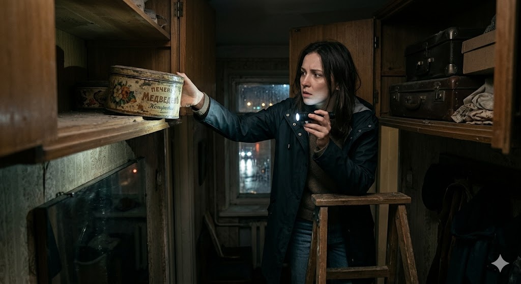 Заехать в старую квартиру было делом двадцати минут. Там пахло пылью и покинутостью. Подсвечивая себе фонариком на телефоне, я встала на табуретку в коридоре, открыла дверцу скрипучей антресоли. Там, среди старых чемоданов и забытых зимних шапок, действительно нашлась большая круглая жестяная коробка с выцветшим рисунком роз. Она оказалась неожиданно тяжелой.