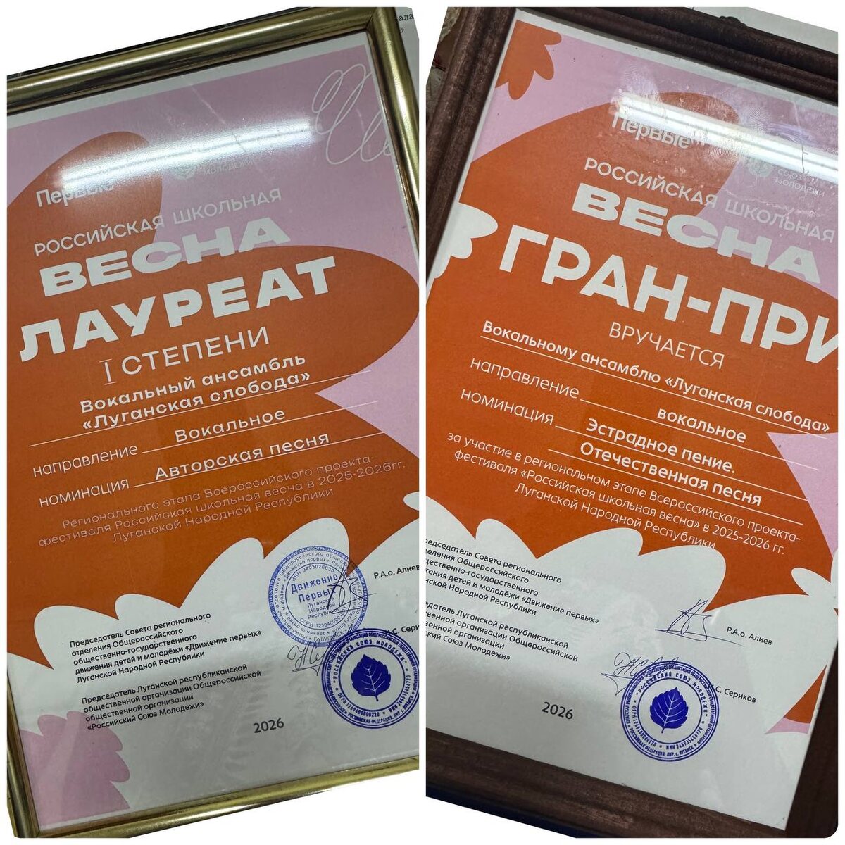» На базе Дома молодёжи прошёл гала-концерт и церемония награждения Регионального этапа Всероссийского проекта-фестиваля «Российская школьная весна», участие в котором принимал вокальный коллектив Республиканского казачьего кадетского корпуса имени маршала авиации Александра Ефимова «Луганская слобода». Организаторами события выступили региональное отделение Движения Первых ЛНР и Луганская республиканская общественная организация «Российский союз молодёжи». 🏆Наши кадеты в упорной борьбе завоевали Гран-при в номинации «Эстрадное пение. Отечественная песня» и стали лауреатами 1 степени в номинации «Авторская песня». Теперь наш ансамбль представит Луганскую Народную Республику в финале Всероссийского конкурса в Ставрополе! Желаем нашим участникам только вдохновения, ярких выступлений и новых заслуженных побед! ————— Поддержите канал Подпиской на "Сыны Отечества" или Голосом за канал ✅ подписаться |⚡️проголосовать 📲Наш проект в социальных сетях: Вконтакте, Одноклассники, Дзен, RuT