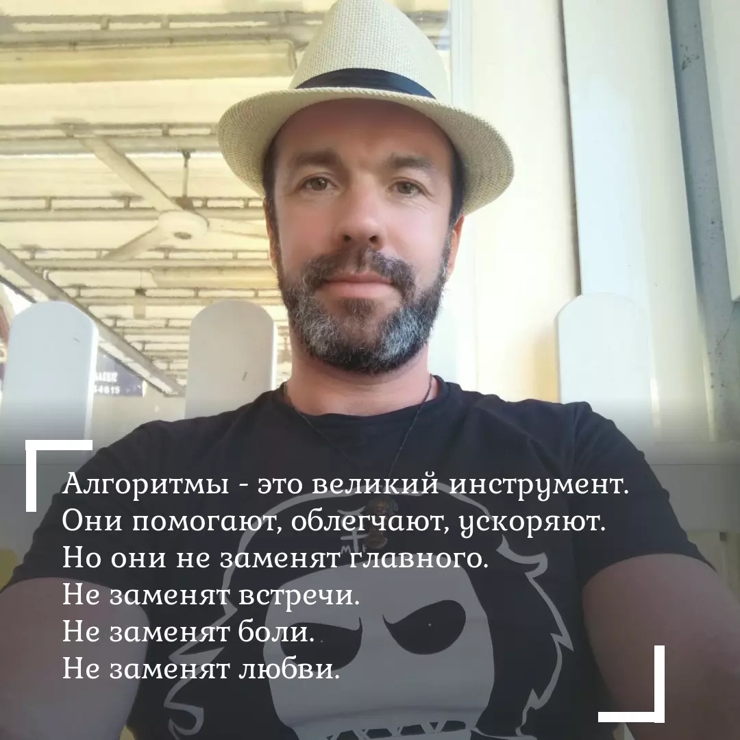 Алгоритмы - это великий инструмент. Они помогают, облегчают, ускоряют. Но они не заменят главного. Не заменят встречи. Не заменят боли. Не заменят любви.