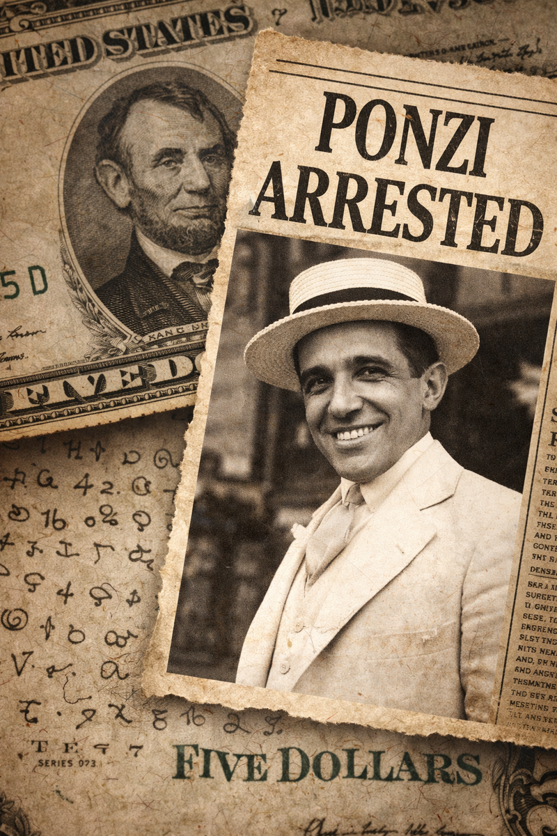 Понци прекрасно понимал, что схема конечна: в его бумагах нашли расчёты, он явно отслеживал соотношение входящих и исходящих денег. Но он верил — или убеждал себя — что успеет найти настоящую прибыльную схему прежде, чем всё рухнет.