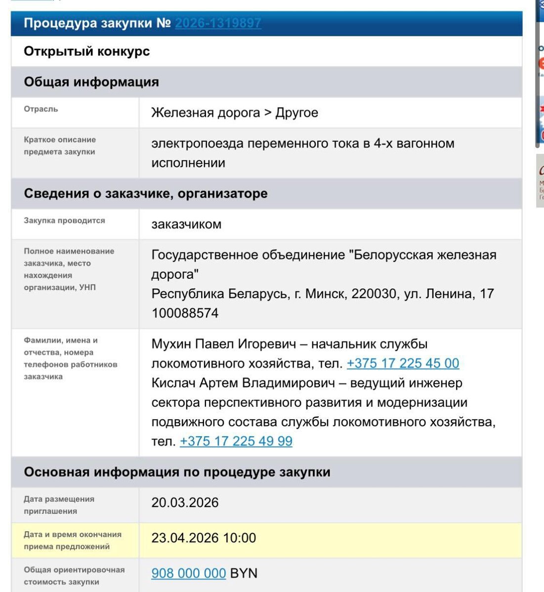 Планировка вагонов: • 12 поездов c планировкой кресел по схеме «3+2» со встречным размещением; • 18 поездов c планировкой кресел в головных вагонах по схеме «3+2», а в прицепных вагонах по схеме «3+3» со встречным размещением Общий бюджет - около 908 млн рублей. Поставки начнутся уже с июня 2026 года и продлятся до 2030-го. ✔️ Минскач • Подписаться