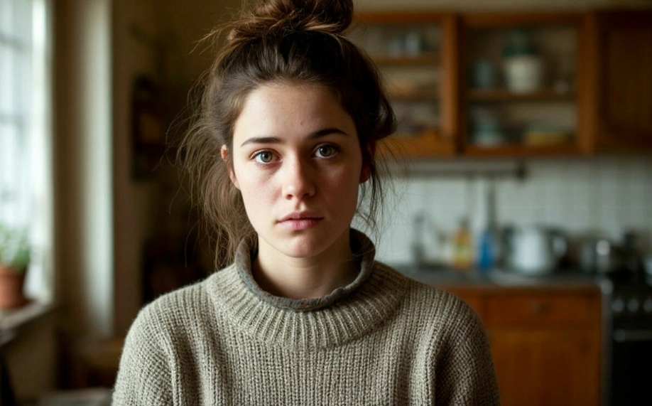 — Ты поздно, — сказала Маша, выглядывая из-за двери. На ней был старый, застиранный свитер, волосы стянуты в узел. Ни браслетов, ни блеска — только усталые глаза и лёгкая мучная пыль на щеке.