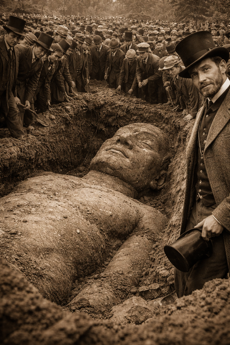Нили не растерялся. Он огородил яму, поставил входную будку и назначил цену: пятьдесят центов за взгляд на гиганта. Первая неделя принесла несколько сотен долларов. Слухи расходились быстрее любой рекламы. Газеты штата наперебой публиковали заметки — одни называли находку окаменевшим человеком доисторических времён, другие видели доказательство буквальной истинности Библии. Никто из первых комментаторов не написал слово «подделка».