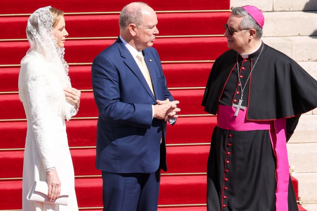 Княгиня Монако Шарлен сияет в белом на встрече с Папой Римским Львом XIV. Глава католической церкви впервые за 500 лет посетил Монако. 🤍