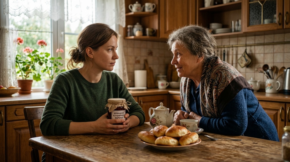 Варенье из тёрна стояло на полке в кладовке — маленькая баночка с рукописной этикеткой: «Тётя Зоя. Август». Надежда смотрела на неё каждый раз, когда заходила за крупой или консервами. Просто смотрела — и ставила обратно. Не потому что варенье было невкусным. Потому что оно было последним, что осталось от тёти Зои. Единственная вещь, которую та сделала своими руками прошлым летом, когда ещё ходила в сад.