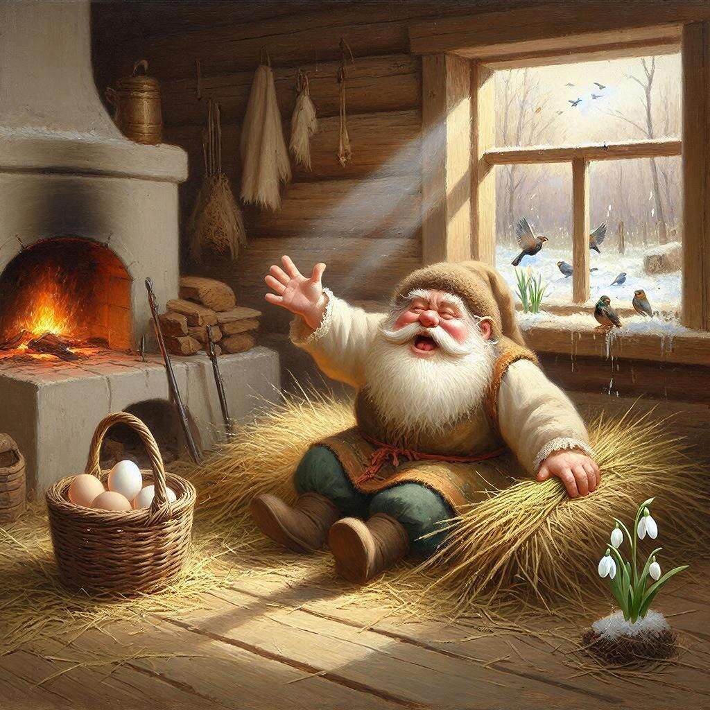Наши предки жили в гармонии с природой. Считалось, что зимой Домовой, как и лесные духи, впадает в спячку. Он живет за печкой (самое теплое и почетное место в доме), и всю зиму спит, охраняя хозяйство в пассивном режиме. Но весна берет свое: с первыми капелями, с таянием снегов и удлинением светового дня, Домовой начинает просыпаться.