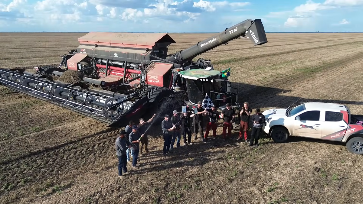 Рекорд установлен на Fazenda Bananal группы Agro Basso в штате Баия, где платформа NEXAT мощностью 1100 л.с. с двух-роторным уборочным модулем NEXCO и жаткой MacDon FlexDraper шириной 15,2 м убрала 158,16 га сои за 8 часов. Средняя производительность составила 79,72 т/ч при рабочей скорости 13,6 км/ч. Влажность культуры – 14%, расход топлива – 7,5 л/га, потери – менее 0,5%. Рекорд зафиксирован RankBrasil. Предыдущий мировой рекорд по уборке сои за 8 часов был установлен в 2017 году комбайном New Holland CR8.90 в том же штате Баия – 439,73 т. Новый результат выше на 198,03 т. Таким образом рекорд NEXAT показывает, что их новая платформа с двумя поперечными роторами вышла на уровень конкуренции с самыми высокопроизводительными комбайнами традиционной конструкции, включая последние флагманы от John Deere и CNH.