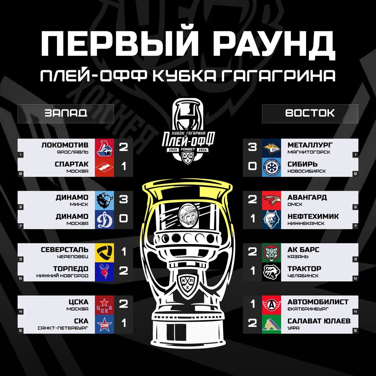 🏆 Вот такая вот картина вырисовывается на данный момент в турнирной сетке Кубка Гагарина