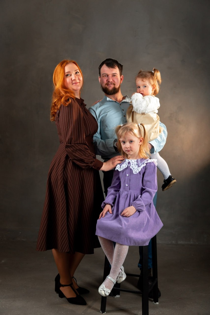 ! Для каждой семьи-участника у меня запланировано 4 сюжета: три домашних съёмки и один финальный портрет в студии. По обстоятельствам мы начали с конца — с финального портрета. Папа скоро уезжает в длительную командировку, и важно было успеть сделать кадр с его участием. Такие моменты сильно влияют на процесс — съёмка становится не только про идею, но и про реальную жизнь. Сейчас, пересматривая результат, я понимаю, как можно усилить этот портрет: мне хочется больше пространства в кадре и более сложного светового решения. И это нормальная часть процесса. Проект «СЕМЬЯ» — не только про итоговые фотографии, но и про поиск, пробы и формирование собственного визуального языка. Появилась мысль переснять финальный портрет спустя время, когда папа вернётся из командировки. Дети в таком возрасте быстро меняются, и через время этот кадр может зазвучать ещё сильнее. А пока делюсь тем, что получилось на первом этапе. Для меня важно фиксировать этот путь таким, какой он есть.