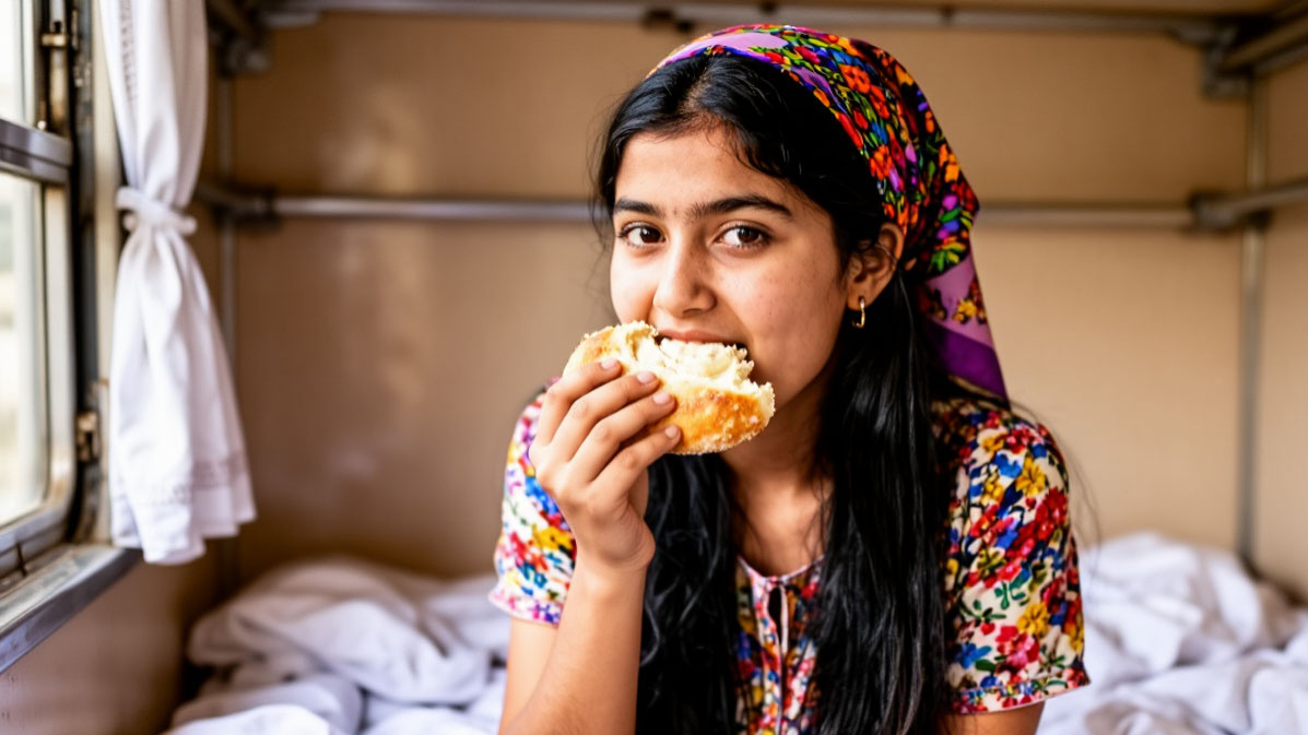На одной из остановок я вышел на перрон и купил несколько пакетиков чая. Вернувшись, предложил женщинам присоединиться. Мы заварили чай в кружках, достали лепёшки и сухофрукты. Разговор перешёл на другие темы: Аиша рассказывала, как помогает матери по хозяйству, как собирает урюк и сушит его на солнце, как пасет гусей на склонах гор.