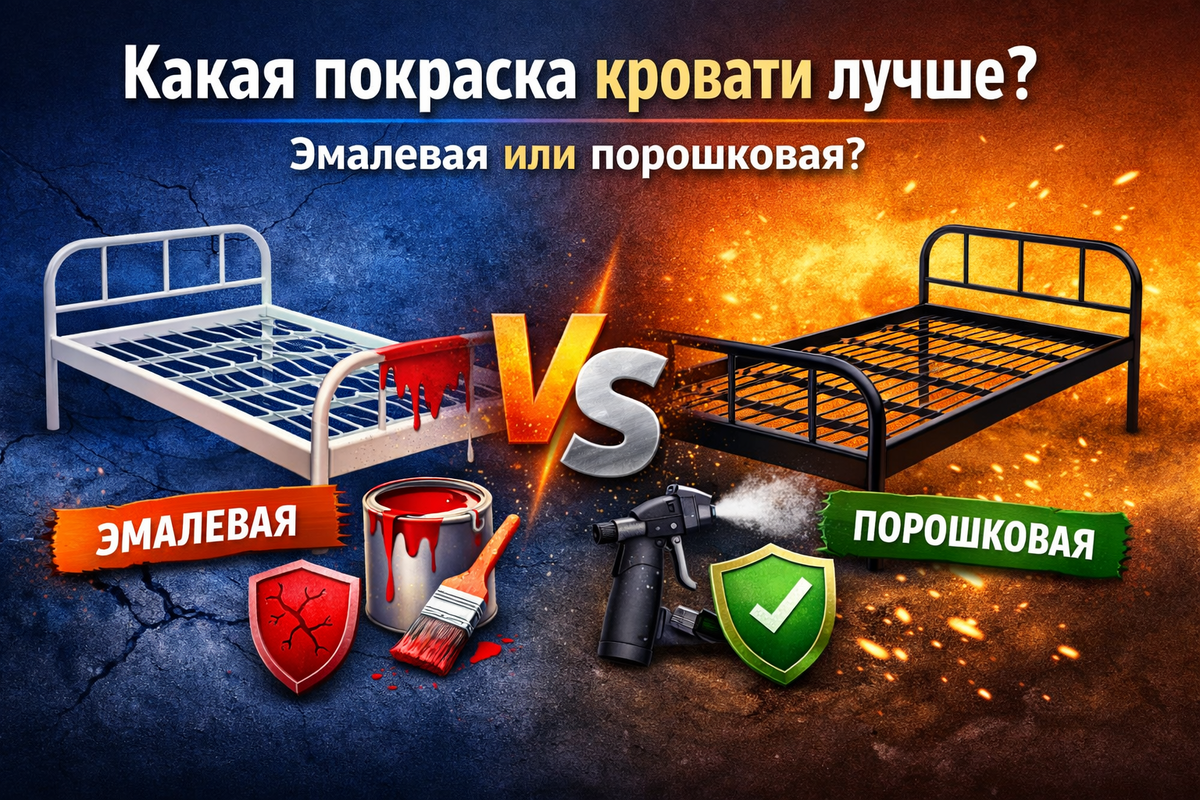 При выборе металлической кровати многие смотрят только на цену, но это ошибка. Один из ключевых параметров — тип покраски. Именно от него зависит, как долго кровать сохранит нормальный внешний вид и насколько хорошо выдержит ежедневную эксплуатацию. Если сравнивать эмалевую и полимерную порошковую покраску, то в большинстве случаев порошковая лучше. Такое покрытие более устойчиво к царапинам, сколам, истиранию и влаге. Оно дольше сохраняет аккуратный вид и лучше подходит для кроватей, которые покупают для хостелов, общежитий, бытовок, строительных объектов и рабочих помещений. Эмалевая покраска обычно дешевле. Это ее главный плюс. Но у нее есть и минусы: она быстрее изнашивается, хуже переносит интенсивную нагрузку и со временем чаще теряет внешний вид. Если нужна максимально бюджетная кровать на короткий срок, такой вариант еще можно рассматривать. Но для постоянного использования это, как правило, слабое решение. Полимерная порошковая покраска стоит дороже, но эта разница обычно опра
