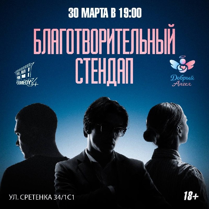 Смешнейшие стендап комики выступят для вас с лучшими шутками, а деньги с билетов будут пожертвованы фонду «Добрый ангел» 👼Благотворительный концерт ⏰30 марта 19:00 📍ул.Сретенка 34/1с1 📎Билеты тут ‼️МЫ ТЕПЕРЬ И В MAX‼️