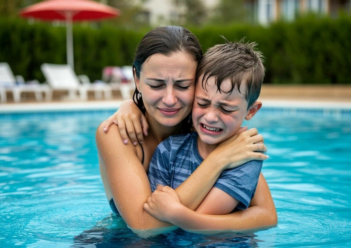 Мальчик поскользнулся и упал в воду. Девушка бросилась к нему, даже не раздумывая. Прыгнув в бассейн прямо в форме, она подхватила ребёнка и с трудом вытащила его на край. Руки тряслись, сердце колотилось как бешеное.