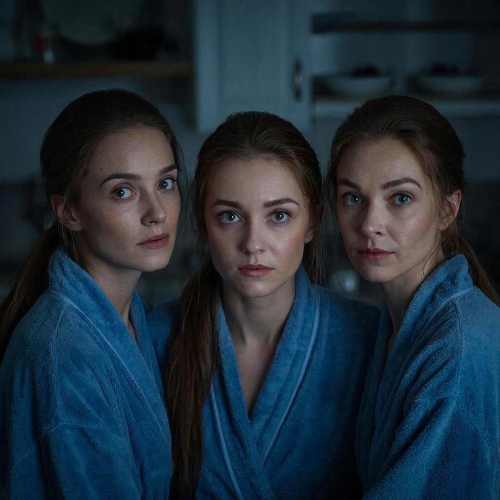 Я смотрел и не верил своим глазам. Три одинаковые женщины. Та же стрижка, тот же халат. Они разговаривали, смеялись, ели. Как ни в чём не бывало. Одна из них — та, что пришла из спальни — взяла хлеб, вторая подвинула ей тарелку, третья налила сок.