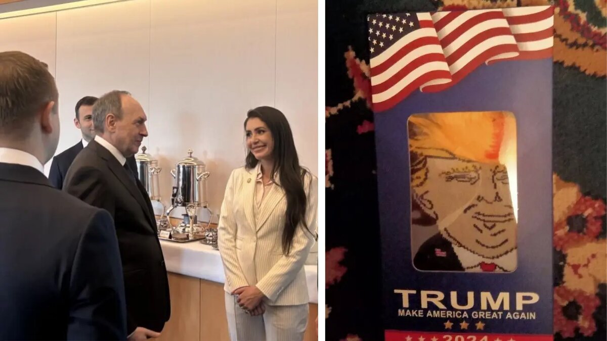 По словам депутата Делягина, американская сторона изначально просила отказаться от подарков для десяти гостей. Однако после прибытия делегации ситуация изменилась, и им были вручены носки с изображением Трампа, а также личный знак Анны Паулины Луны.