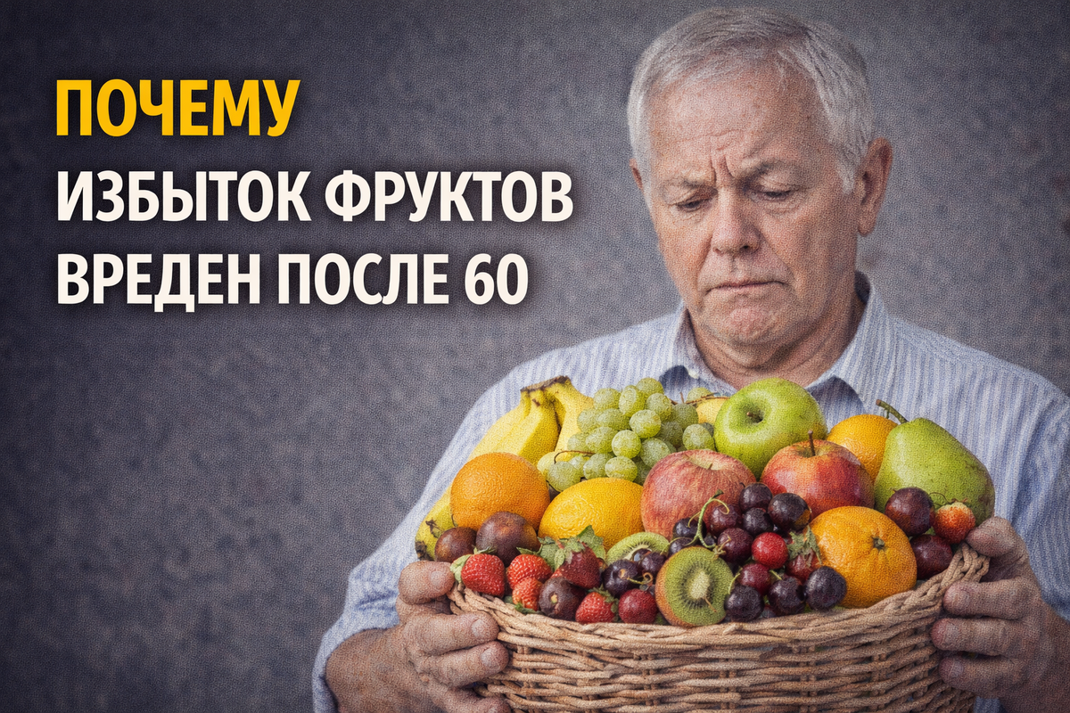 👉 даже полезные продукты могут навредить, если их слишком много. Многие начинают есть больше фруктов «для здоровья» — и не замечают, как появляются: Разберёмся спокойно: почему избыток фруктов после 60 может быть проблемой. Главный момент — это фруктоза. Это природный сахар, но он: С возрастом организм перерабатывает фруктозу хуже. Если фруктов много: Особенно это важно для людей с преддиабетом и диабетом. Многие думают: «это же не конфеты». Но если съесть: в большом количестве — эффект будет похож. Что происходит: Иногда это сопровождается: После 60 лет пищеварение становится более чувствительным. Избыток фруктов может вызывать: Особенно если есть: Фрукты — это клетчатка, но её тоже может быть слишком много. Неочевидный факт, но избыток фруктов может влиять и на давление. Как это связано: В результате: Это частая ловушка. Человек думает: «я ем то