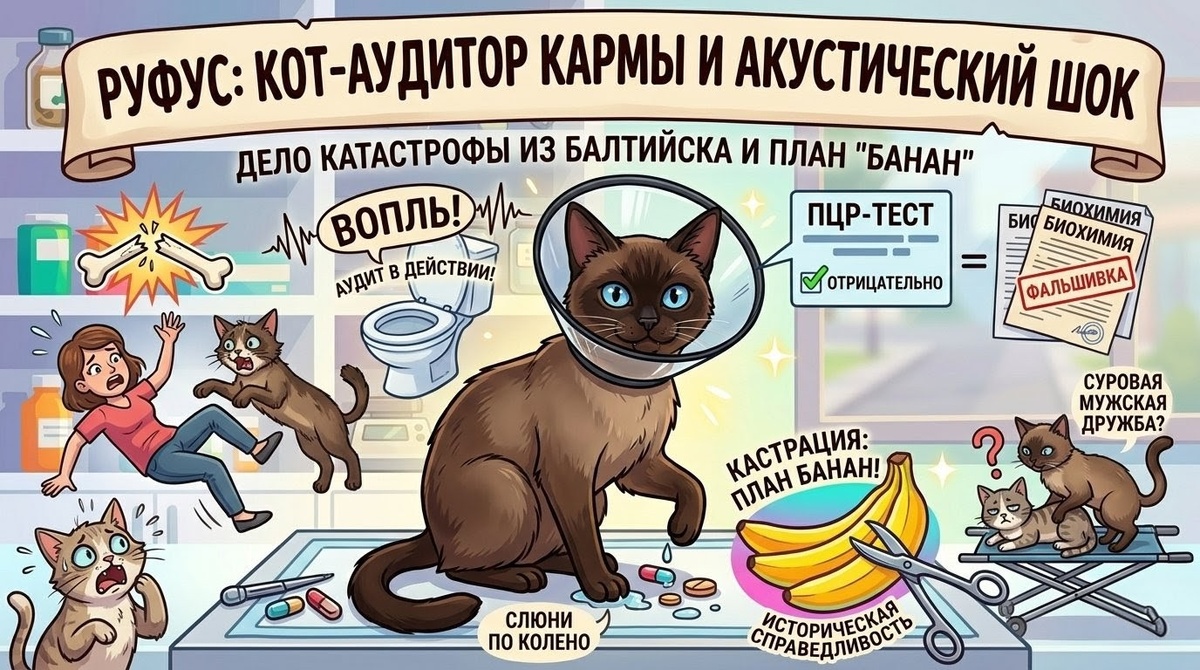 Если вы верите в карму, то Руфус — это её официальный аудитор. Этот кот материализовался в Балтийске с четким планом: проверить человечество на прочность костей, нервную устойчивость и знание биохимии. История Руфуса — это не типичное спаси котика, это производственный триллер с элементами мистики, медицинской драмы и бытового абсурда, где главным героем выступает морда, обладающая способностью превращать жизнь окружающих в хаос одним своим присутствием. Сегодня мы разберем кейс кота, который сломал всё, до чего дотянулся, и как мы пытаемся собрать эту реальность обратно по кусочкам.